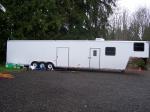 28' Hauler space, comes with cabinetts,bench,lights,3000 watt propaine generator and is tall for sprint cars. Front has 20' living quarters with shower,toilet,new frig, AC, counter and sink(cabinets are not finished). Can sleep 6. Motivated seller, Asking $26,500.00 OBO Contact Jean 206-730-6274 cel or Sinnerfamily@verizon.net.
