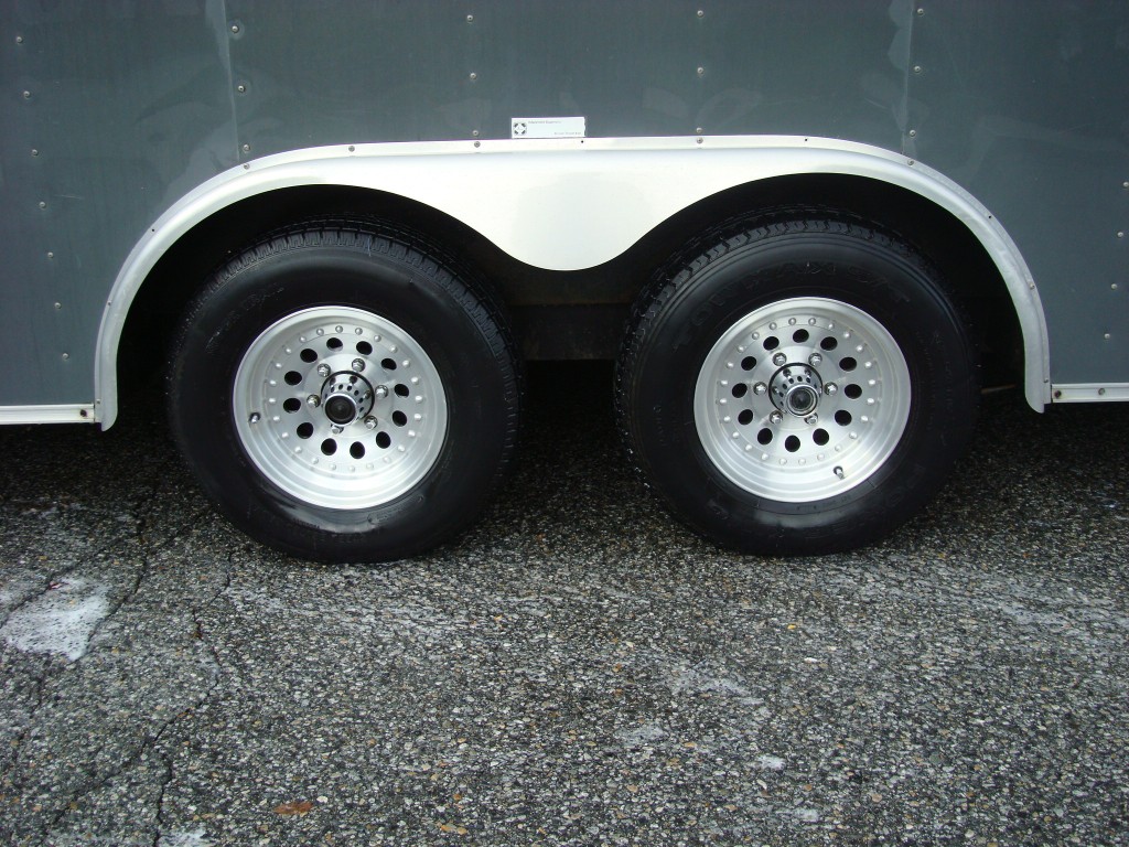 Factory laminate cabinets, 4' side door, mounted air compressor w/ hose reel, 110V outlets, 12V interior lights, aluminum interior siding, diamond plate deck, ramp and rock guard, wall mount tire rack, sprint car front end rack , helmet rack, torsion bar rack,aluminum wheels, good rubber. Great car trailer and shines up really nice!! Normal wear and tear in a few places, otherwise great overall condition . Priced to sell at $6250
