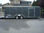 Factory laminate cabinets, 4' side door, mounted air compressor w/ hose reel, 110V outlets, 12V interior lights, aluminum interior siding, diamond plate deck, ramp and rock guard, wall mount tire rack, sprint car front end rack , helmet rack, torsion bar rack,aluminum wheels, good rubber. Great car trailer and shines up really nice!! Normal wear and tear in a few places, otherwise great overall condition . Priced to sell at $6250 Dave 509-670-6644