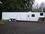 Gooseneck trailer with 28' hauler space. Comes with cabnetts, bench, lights, 3000 watt propaine generator and is tall for sprint cars. Front has 20' living quarters with shower, toilet, new frig, AC, counter and sink (not finished). Can spleep 6. Motivated seller Asking $18,500.00 OBO Call Jean 206-730-6274 or Sinnerfamily@verizon.net