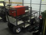 Pit Cart for sale with Snap-On tool chest. Has front axle hangers, shock hangers and shelf that holds one right rear and three lefts rears. I had everything on here that I needed for the night.  Has steerable front axle and the tongue pivots up out of the way.   Can bring to Deming on Friday