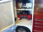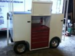Craftsman Tool Box, LED Lighting, 1800 Watt Gen Set, Air Compressor w/ extra 5 gallon capacity tank, 2 - 5 Gallon Fuel Jug Storage, Complete Front Axle Assembly Hanger, Shock Rack, Full Set Radius Rod Duplicator/Hanger, Hidden Drink Cooler, Tire Rack, Rhino Lined Top w/ Ladder, Wheel Wrench Hanger, Fuel Stick Storage, Fire Extinguisher, 12 Volt Plug in for Transponder Charger and much more storage that can be secured with Key Locked Handles. Frame is powered coated White, wheels are 10" Welds w/ Hoosier Tires. Tows great behind a Quad with a 2 ball hitch.