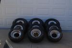 Parts (1) Complete power steering unit (1) Set of headers w/muffler (1) Top Wing (2) Complete front axles (9) Gears - (2) 49's, 55, 56, 53, 54, 51, 52, 48 (2) Rear drive sprockets (1) Steering box (1) Steering axle complete w/rods and ends (14) Misc. steering rods and axle rods with heims (1) Air box (7) Tortion bars (2) Fuel cans (1) Funnel (3) Right rear bead lock wheels and tires (3) Left rear bead lock wheels and tires (2) Front wheels and tires (1) New shift cable (1) Stock computer box (1) Multi computer box (1) Watts pan hard bar