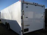 Nearly New - 2013 Covered Wagon 24 Ft Enclosed Trailer with 5200LB Torsion axles, brakes on both axles, ramp door, side door, 3/4 plywood floor, 3/8 plywood walls, 4 D-Rings, smooth sides, interior light, roof vent, custom entry step on man door, white.